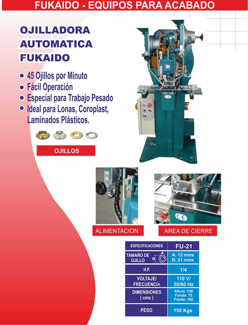 Ficha técnica Ojilladora FU21